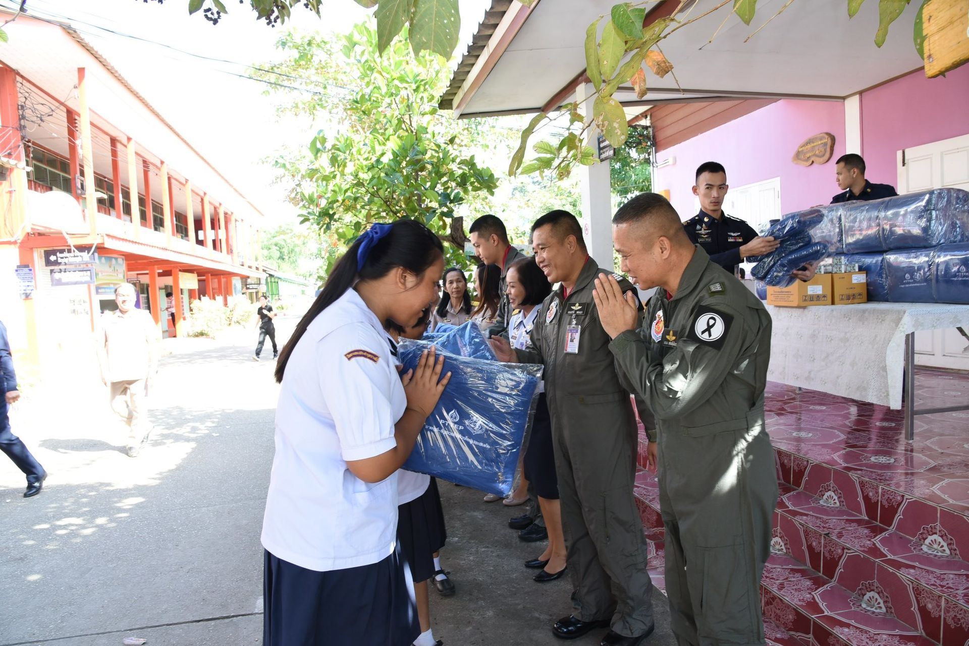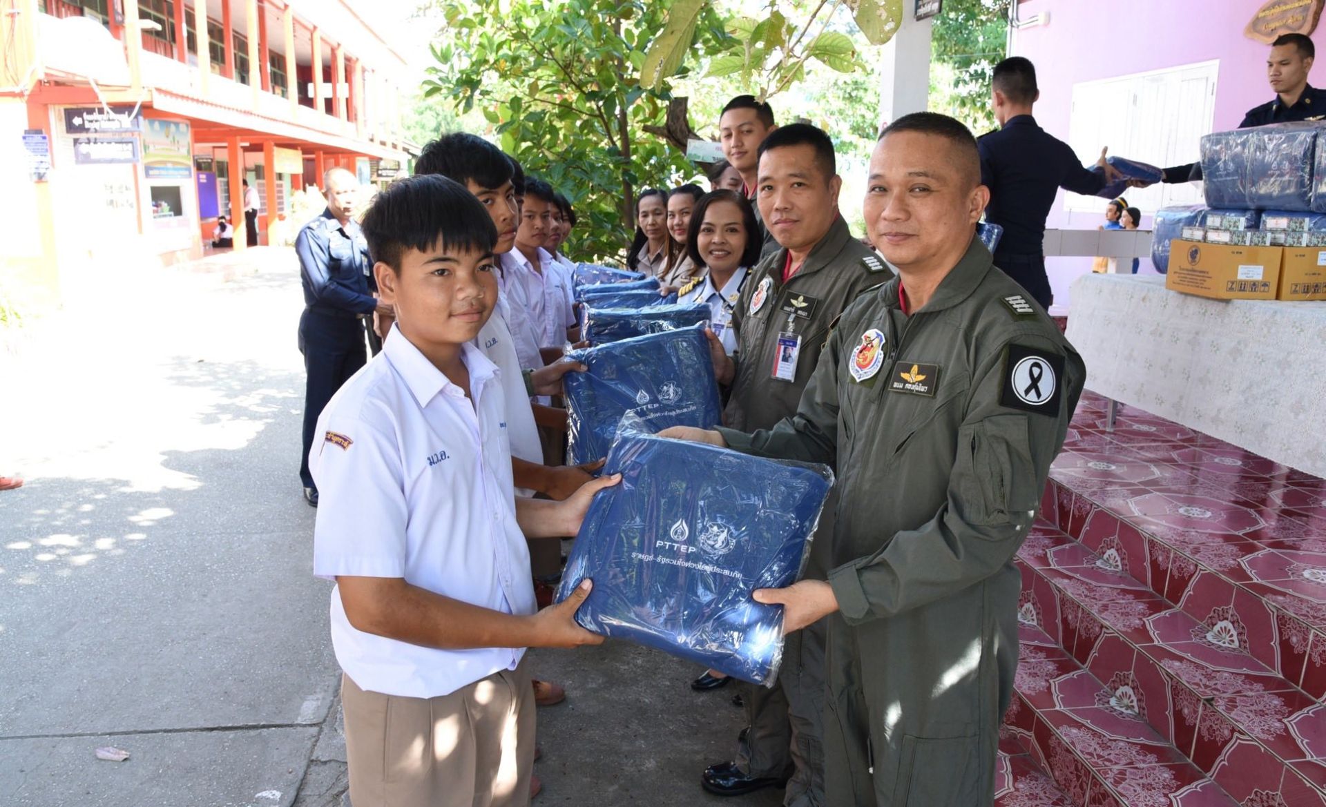 กันหนาว ณ โรงเรียนที่ตั้งโดยรอบกองบิน 46 กองทัพอากาศ สนับสนุนโดย บริษัท ปตท.สำรวจและผลิตปิโตรเลียม จำกัด (มหาชน) ร่วมกับ กองบิน 46
