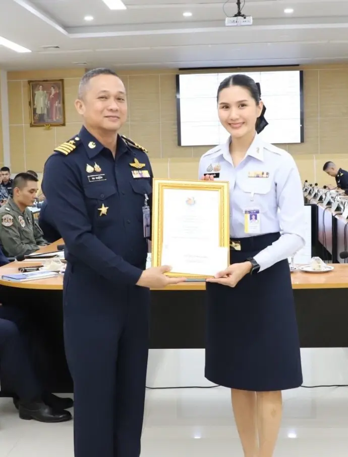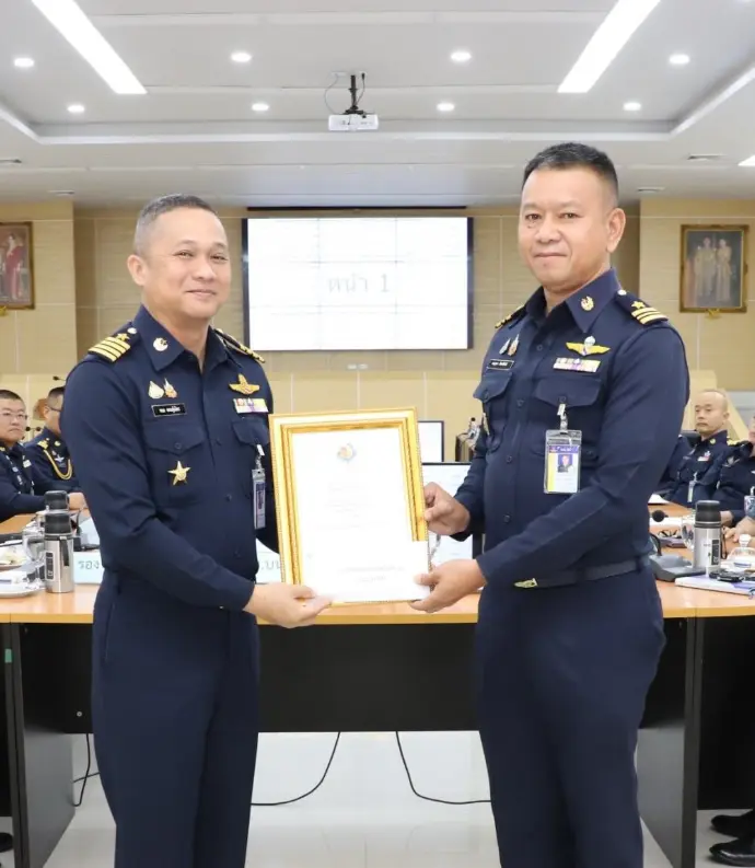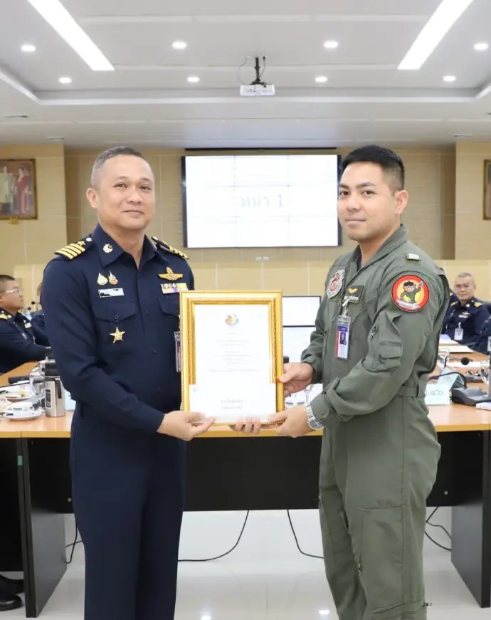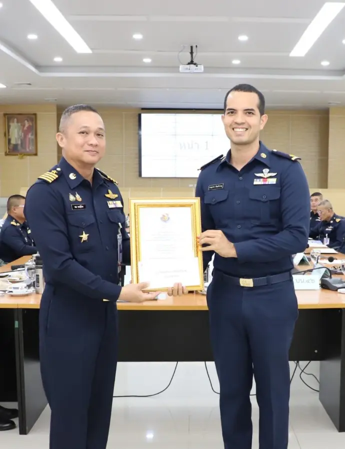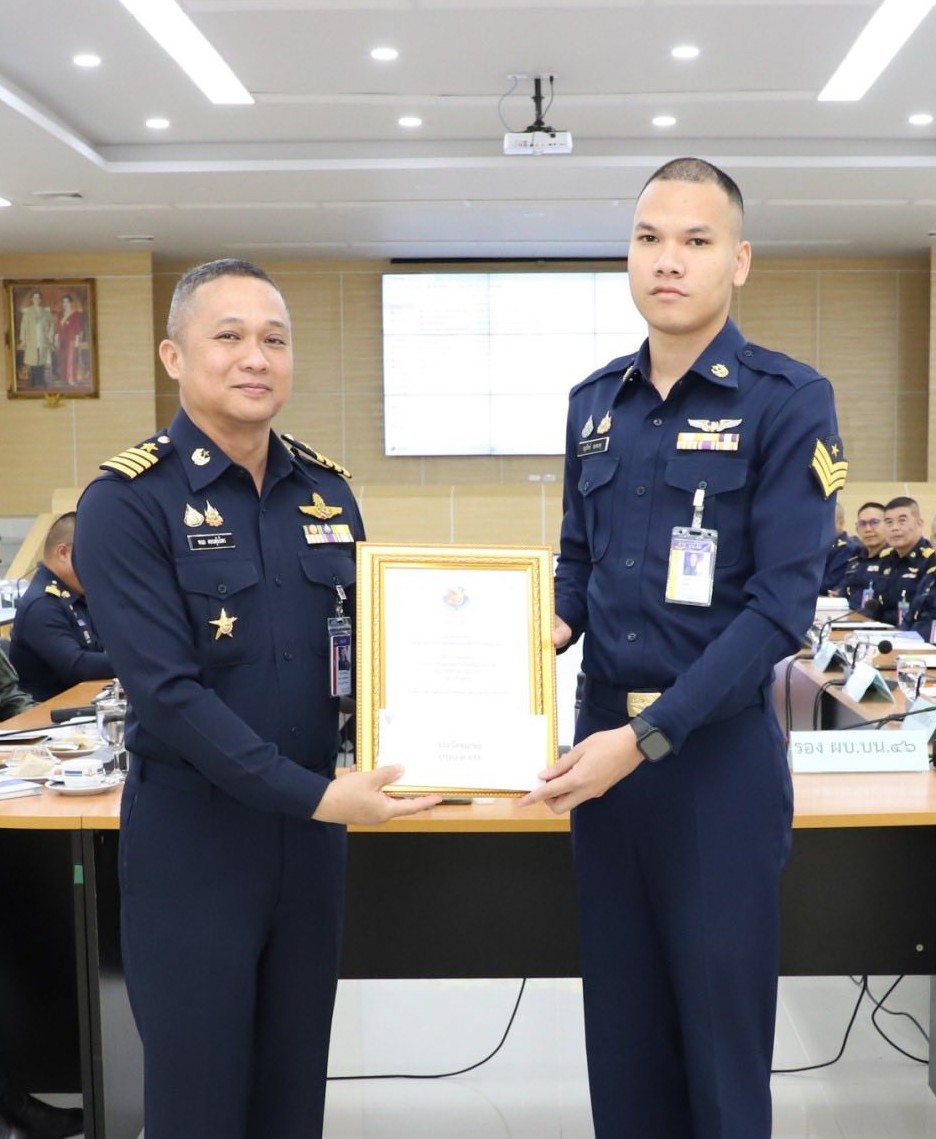 นาวาอากาศเอก เสรวรรถ คล้ายพุฒ ผู้บังคับการกอง 46 เป็นผู้เข้ารับรางวัล นิรภัยการบินดีเด่น กองทัพอากาศ ประเภทหน่วยบิน ประจำปี 2568