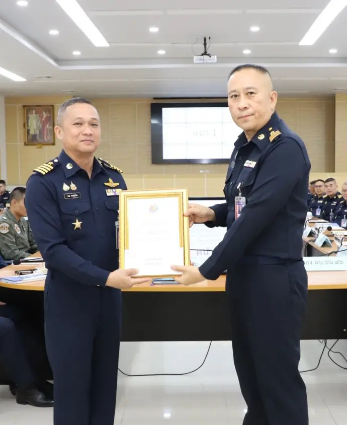 พลอากาศเอก พันธ์ภักดี พัฒนกุล ผู้บัญชาการทหารอากาศ เป็นประธานในพิธีมอบรางวัลการทดสอบและประเมินค่าการปฏิบัติการทางอากาศยุทธวิธี ประจำปี 2568 ณ ห้องรับรองจักรพงษ์ กองบัญชาการกองทัพอากาศ